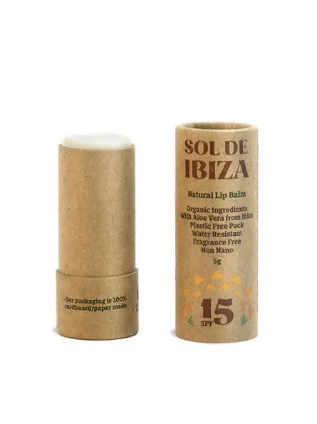 Bálsamo labial con protección solar natural SPF15, formulado con filtros minerales sin Nanopartículas en un envase sin plástico